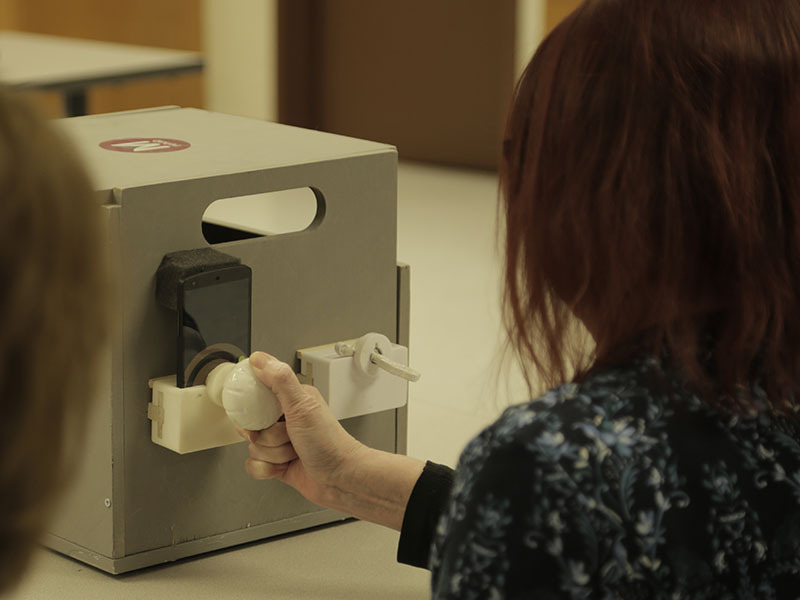 mRehab study participants received a box containing a smartphone with the mRehab app loaded onto it, along with 3D printed household objects. The box acted as a prop, guiding users through the exercises and activities. The objects were customized based on whether a participant was left- or right-handed.