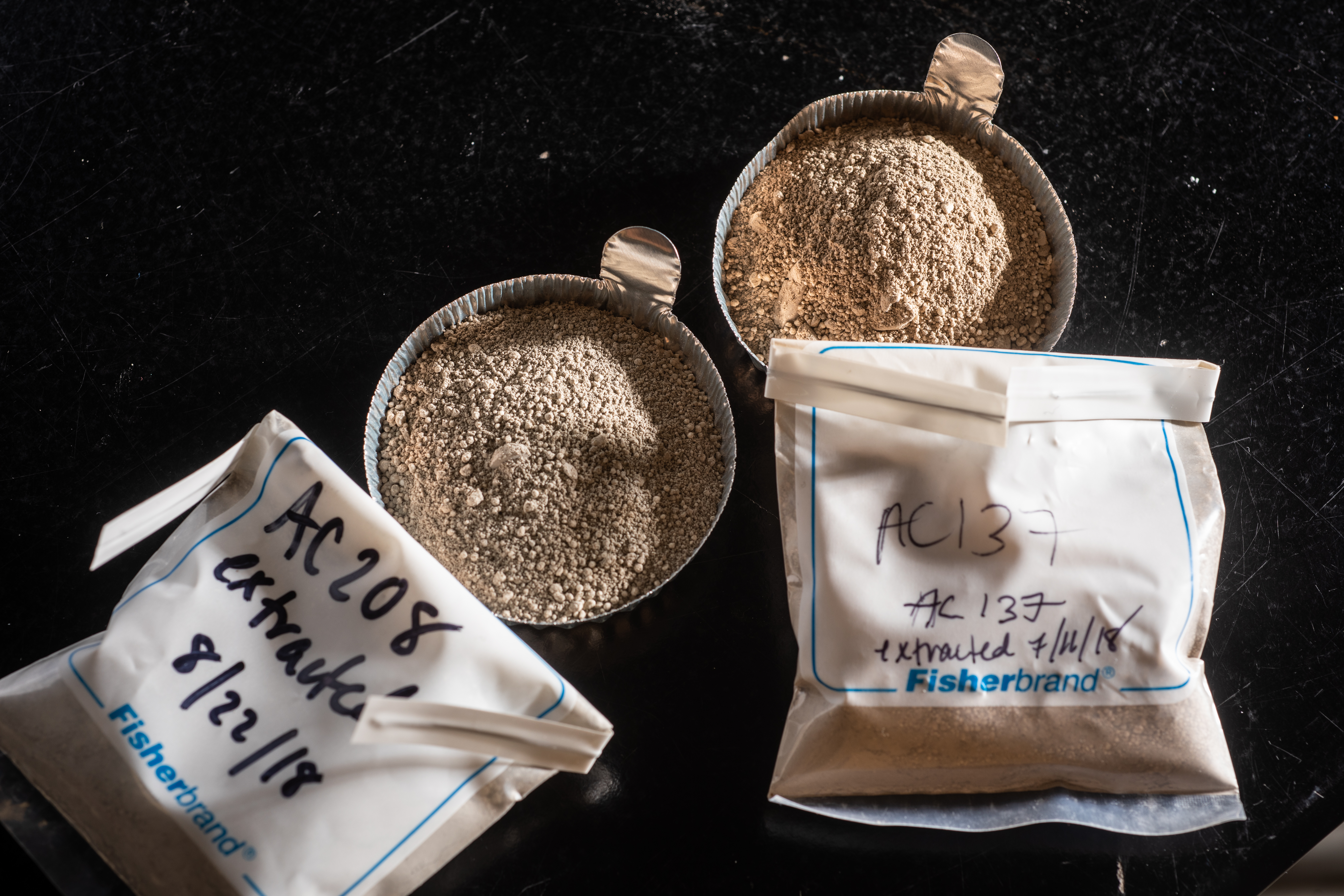 Bags containing ocean-bottom sediments after materials such as leaf wax chemicals have been extracted. Credit: Douglas Levere / University at Buffalo. Download additional photos.