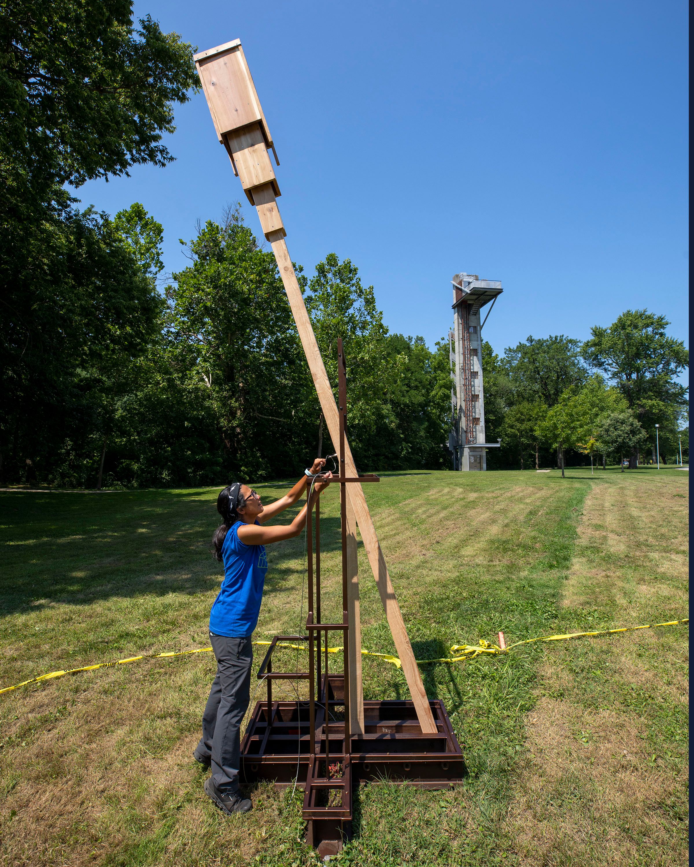 But Hwang’s new installation, similar to previous works she’s built — including Bat Tower in Griffis Sculpture Park in East Otto, New York — asks people to consider the world through the perspective of the often overlooked animals that live among us in our urban environments.