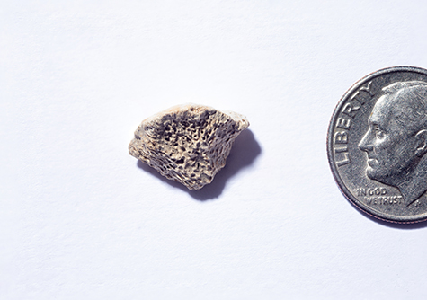 This bone fragment, found in Southeast Alaska, belongs to a dog that lived about 10,150 years ago, according to past research led by UB biologist Charlotte Lindqvist. The new NSF-funded project will build on this work with a broader study that dates and analyzes ancient DNA from multiple species to understand the impact of prehistoric climate change in the region. This photo is a composite that employs a technique called focus-stacking to show details of the bone more clearly. Credit: Douglas Levere / University at Buffalo